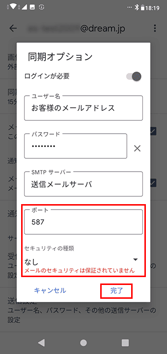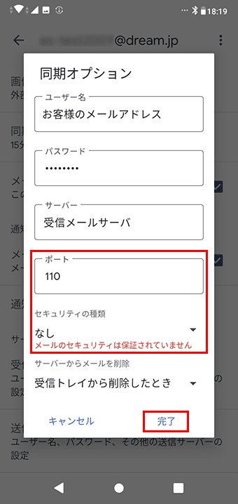 メール手動設定(POP)