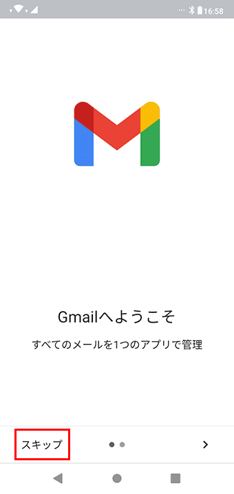 「Gmailへようこそ」の画面が表示された場合