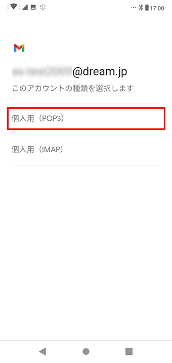 6 「個人用(POP3)」をクリックします。