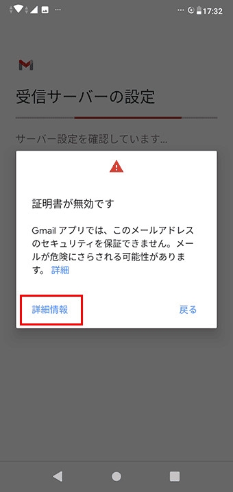 証明書に関する画面が表示された場合