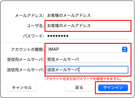 名前 お客様のお名前 メールアドレス お客様のメールアドレス パスワード お客様のメールパスワード -