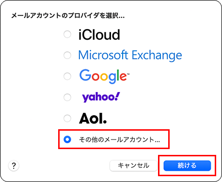 3 その他のメールアカウントにチェックを入れて、「続ける」をクリックします。