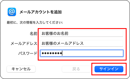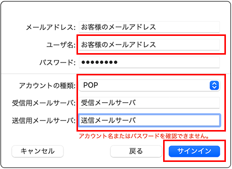 名前 お客様のお名前 メールアドレス お客様のメールアドレス パスワード お客様のメールパスワード -