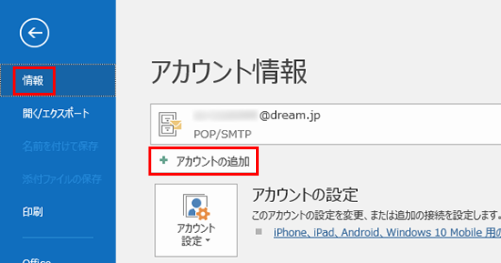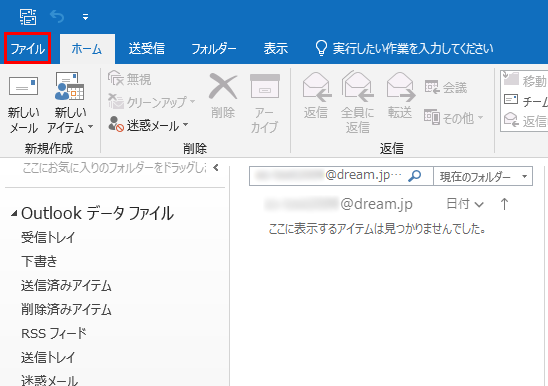 11 アカウントが追加されますので、「ファイル」をクリックします。
