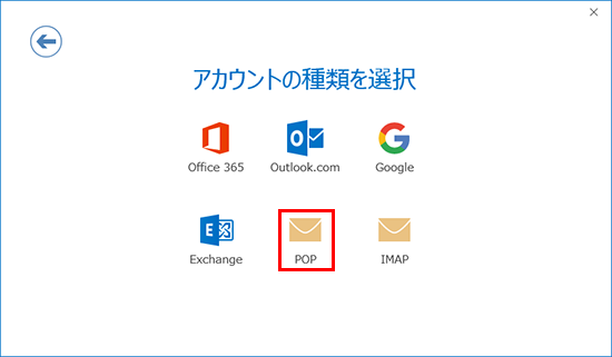 6 「アカウントの種類を選択」の画面が表示されますので「POP」をクリックします。