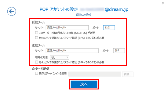 例)pop.b-star.net など110 あり POP overSSL pop.お客様のメールアドレスの@以降
