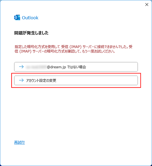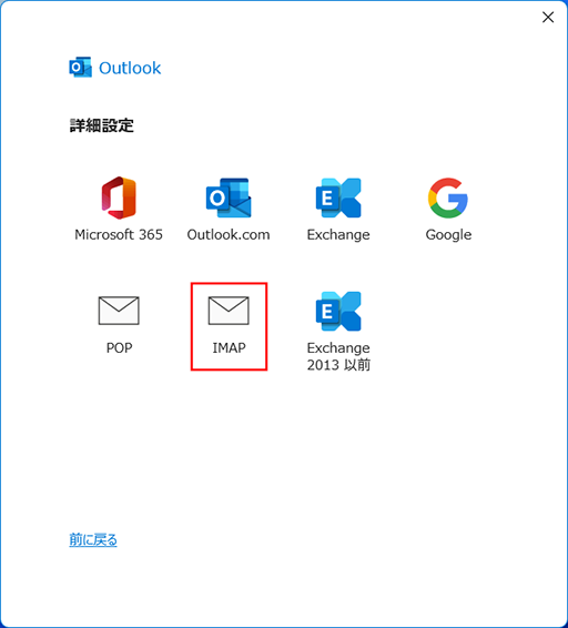 - 【アカウントの追加】をクリックすると②の画面が表示されます。