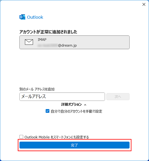 2 設定するメールアドレスを入力し、【詳細オプション】をクリックします。