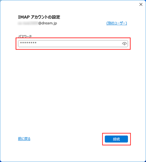 3 【自分で自分のアカウントを手動で設定】にチェックを入れ、【接続】をクリックします。