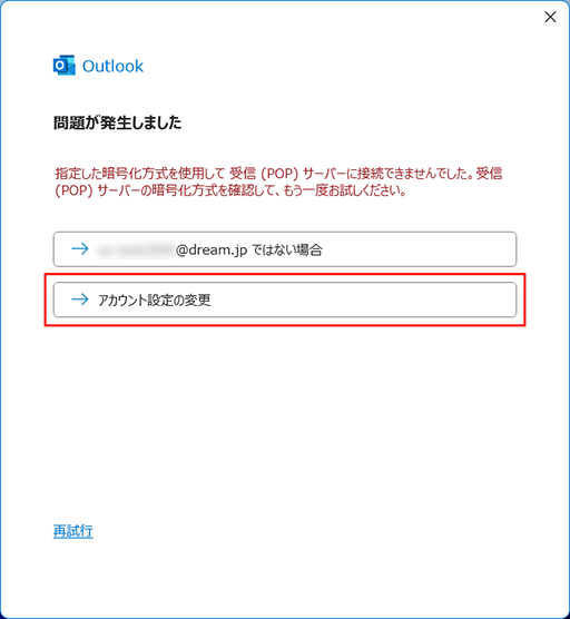- 【アカウント設定の変更】をクリックすると⑥の画面が表示されます。