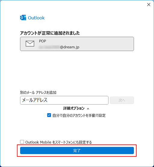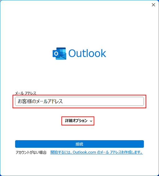 2 設定するメールアドレスを入力し、【詳細オプション】をクリックします。