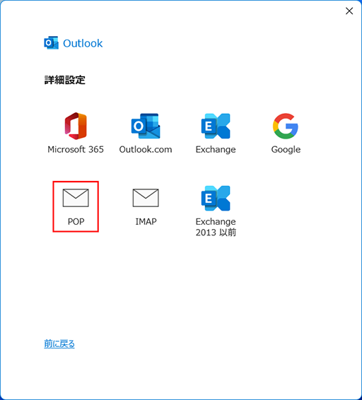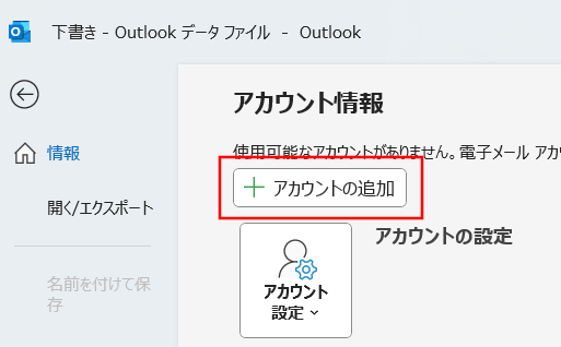 - 【アカウントの追加】をクリックすると②の画面が表示されます。